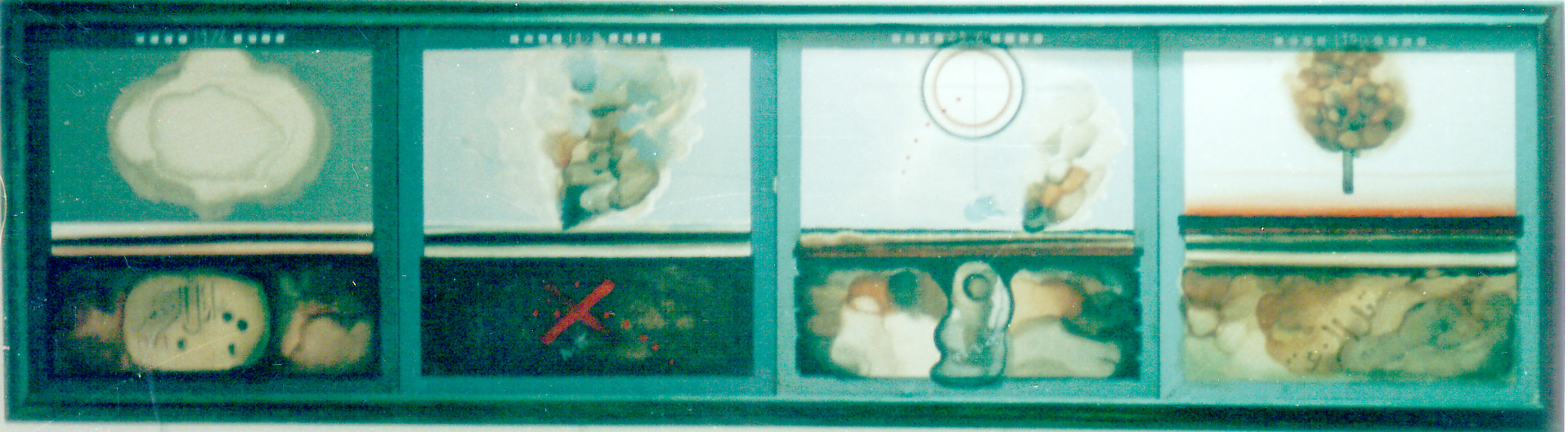 Composition with four vignettes containing various organic shapes
